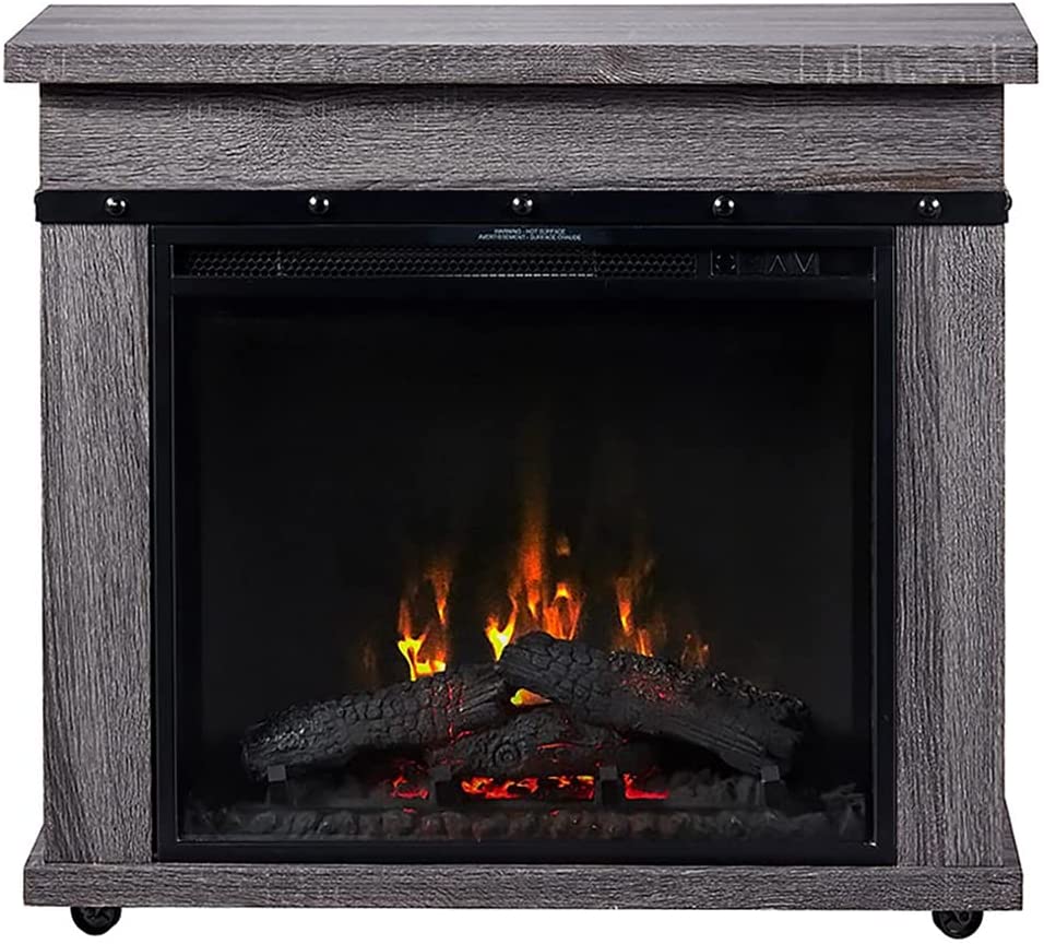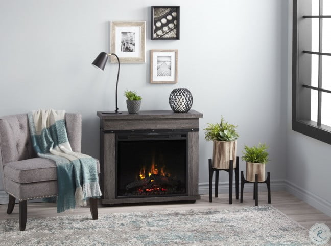 Morgan Electric Fireplace Mantel in Charcoal Oak, with log firebox