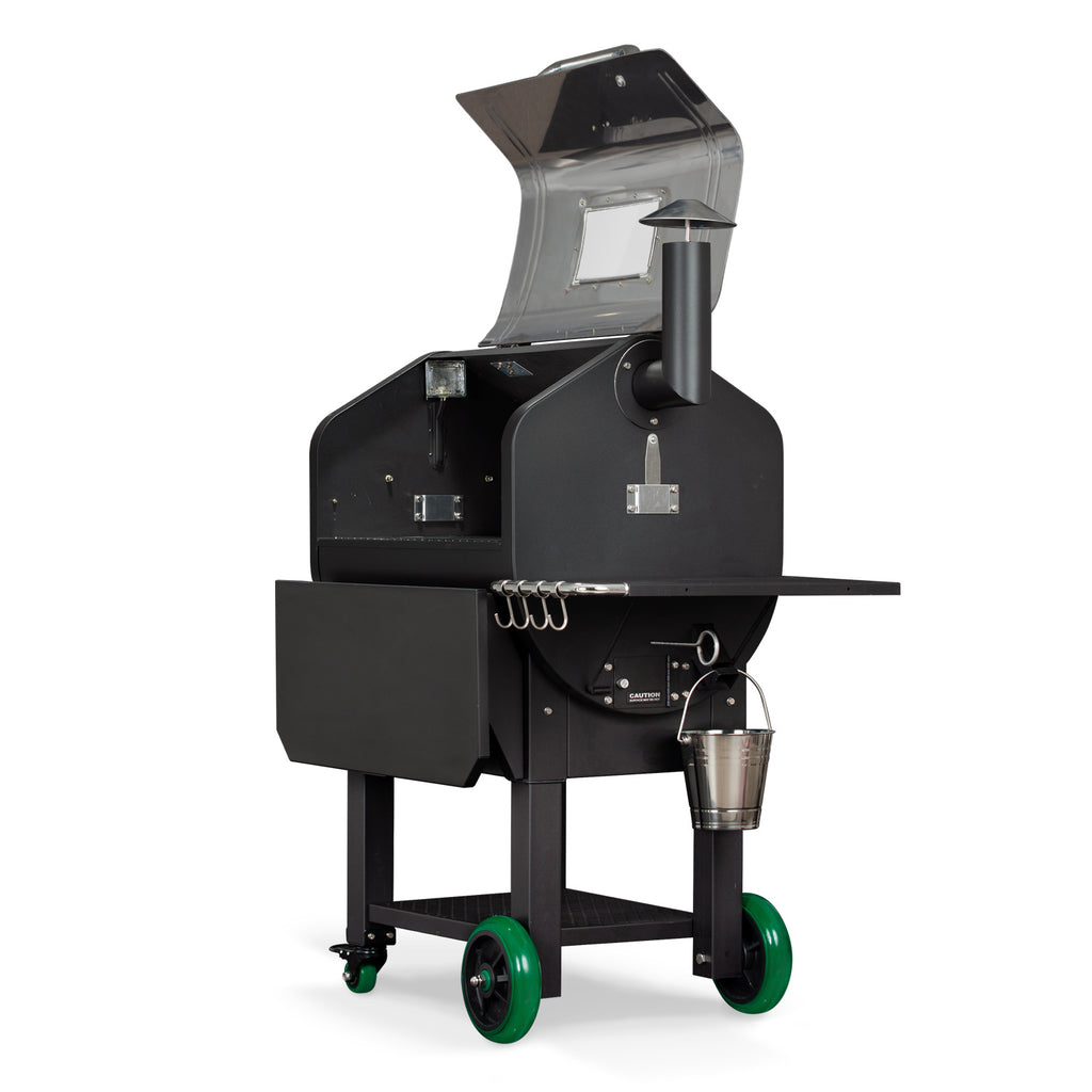 The LEDGE PRIME model comes with a redesigned digital controller that allows you to control and monitor your grill through our iOS or Android mobile application, dual meat probes and a USB port. With the new grill and pellet view windows you can keep an eye on your food without letting smoke/heat escape and see your pellet supply. Our 13.5 in. peaked lid provides enough space for a stand-up chicken to a dozen racks of ribs. Keep all of your grilling tools handy by hanging them on the utensils hooks of your side convenience tray. All of our grills have a venturi-style firebox that creates a cyclone flame that ensures maximum combustion. They also have Sense-Mate, a thermal sensor that constantly monitors the ambient temperature. When the weather gets cold, the sensor kicks the grill into turbo mode, so you don’t have to wait long for the grill to heat up! Other features include Keep Warm Mode and Fan Only Mode with automatic shut-off to blow ash out of the firebox after you finish grilling.