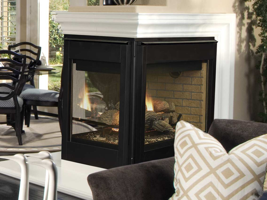Libra 40PF - 40" Libra Direct Vent Gas Fireplace, Top/Rear Combo, Peninsula, Louverless
