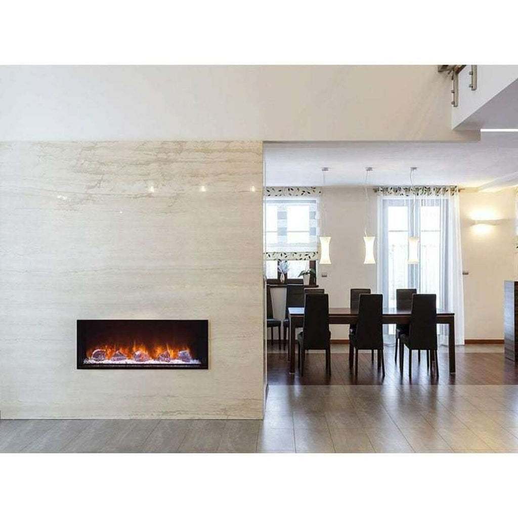 The unit is 11.5" deep with a 40" X 15" viewing area. Included features: Realistic Natural Flame Appearance, Orange/Blue Color Changing Flame, Glowing Coal Ember Bed, 5,000 BTU Heater.