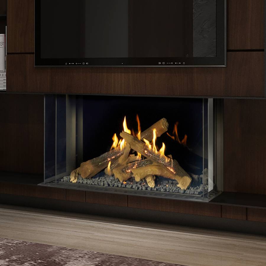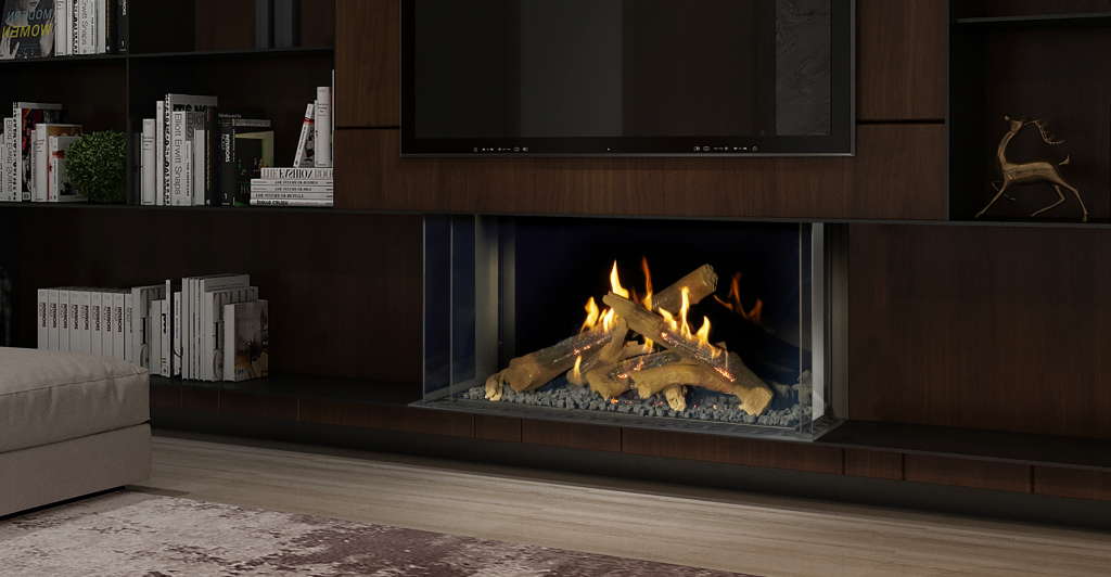 Three Sided 110 Ortal's built-in modern three-sided fireplace designs are architecturally stunning. These unique fireplaces that provide a clear view from multiple vantage points. Like all Ortal pieces, these modern three-sided fireplaces feature advanced safety technology that keeps the unit and wall cool without sacrificing the cozy warmth of the fire. VIEWING AREA