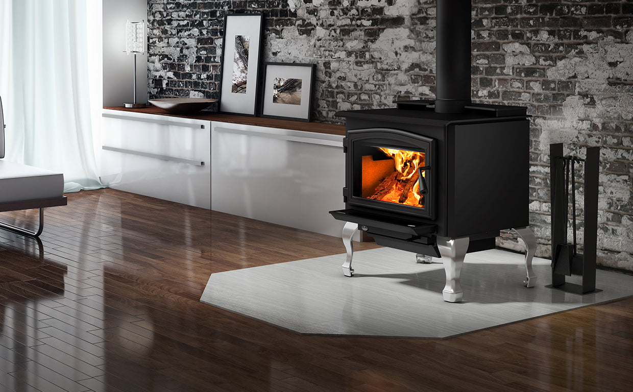 2000 WOOD STOVE - OA10228- BRUSHED NICKEL CAST IRON TRADITIONAL LEGS WITH ASH DRAWER