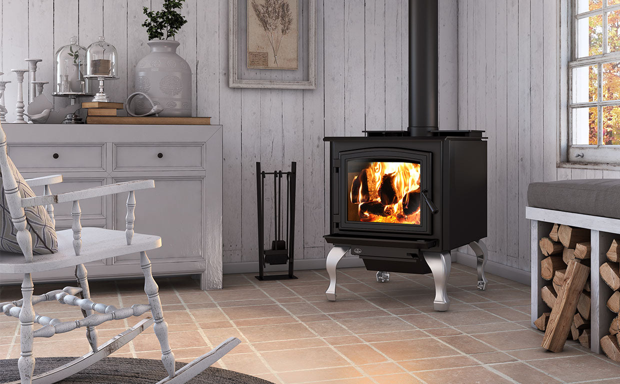 3300 WOOD STOVE- OA10265- BRUSHED NICKEL CAST IRON TRADITIONAL LEGS WITH ASH DRAWER