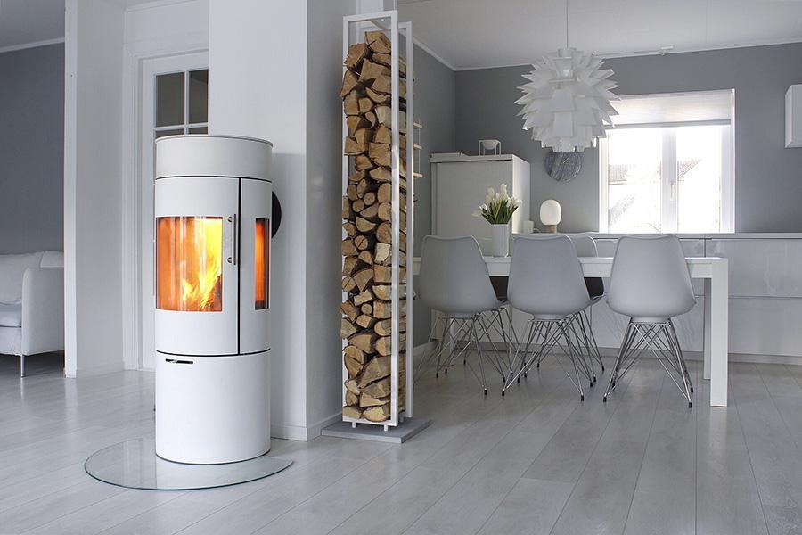 Freestanding Woodwall High Firewood Holder in White without Tools